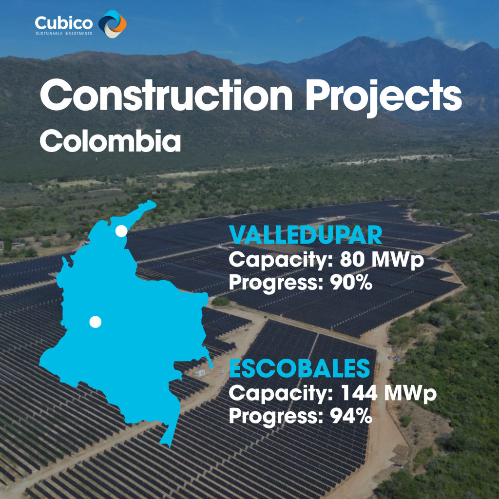 A Cubico, em parceria com a Celsia, está perto de concluir dois grandes projetos de energia solar na Colômbia: Escobales e Valledupar. Juntos, eles somam mais de 220 MWp de capacidade de energia limpa e representam um passo importante para apoiar a transição energética da Colômbia, fortalecendo a rede elétrica e criando oportunidades para as comunidades locais.